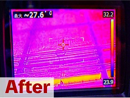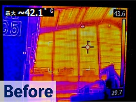 左側が遮熱シート設置前、右が設置後の壁面温度です。